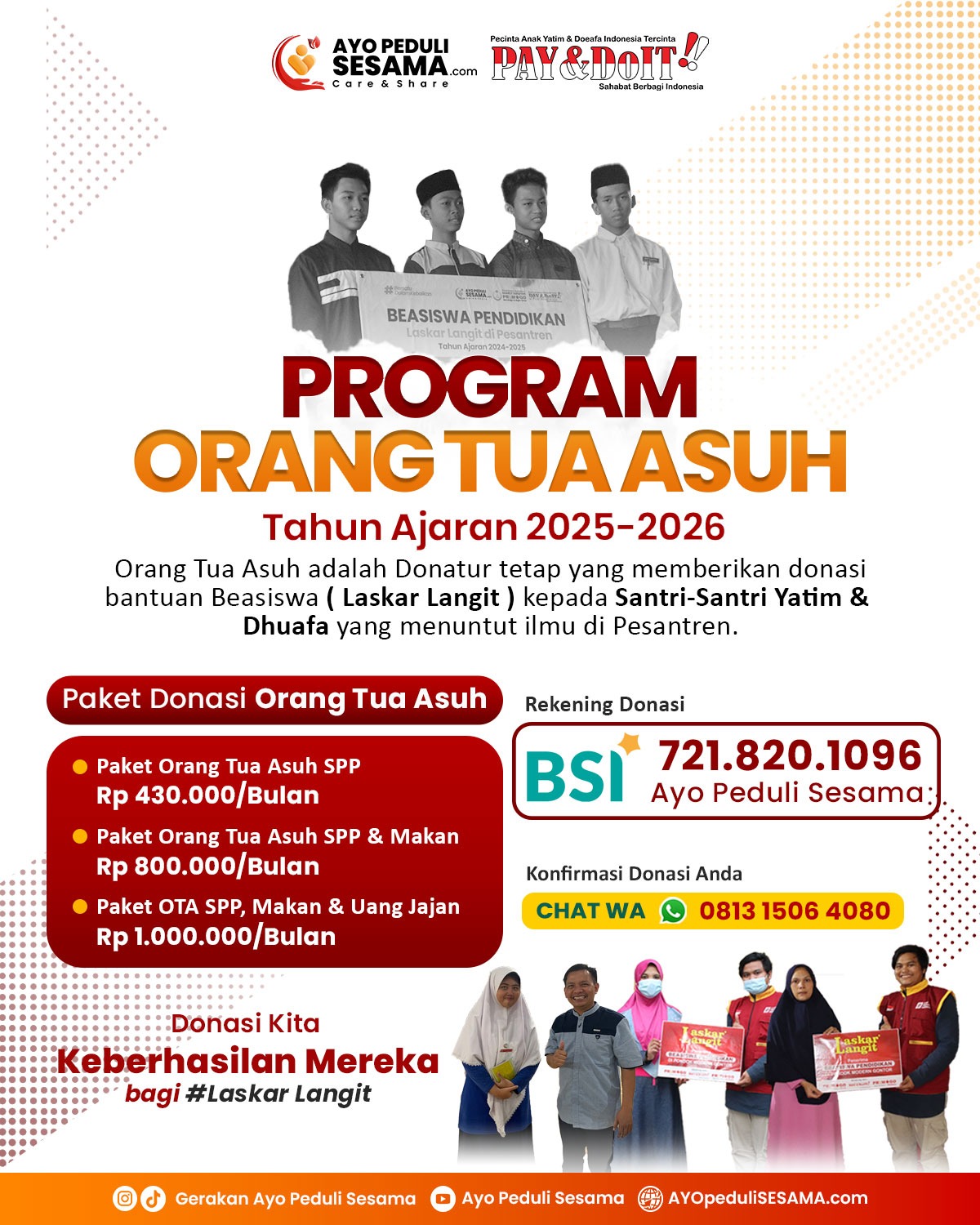 Program ini menamakan anak-anak yatim penerima beasiswa sebagai “Laskar Langit.” Mereka adalah pejuang masa depan yang tetap menatap harapan meski hidup penuh keterbatasan.